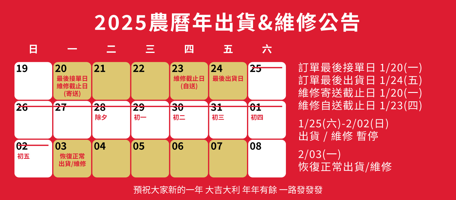 2025 農曆年節出貨&維修&客服公告