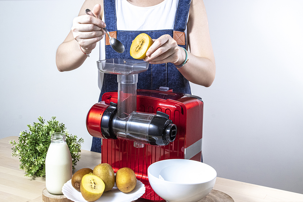 慢磨機不含刀片的設計,並以螺旋鑽搭配低轉速,對食材進行擠壓與研磨的處理,可避免因轉速過高,產生高溫破壞食材營養。