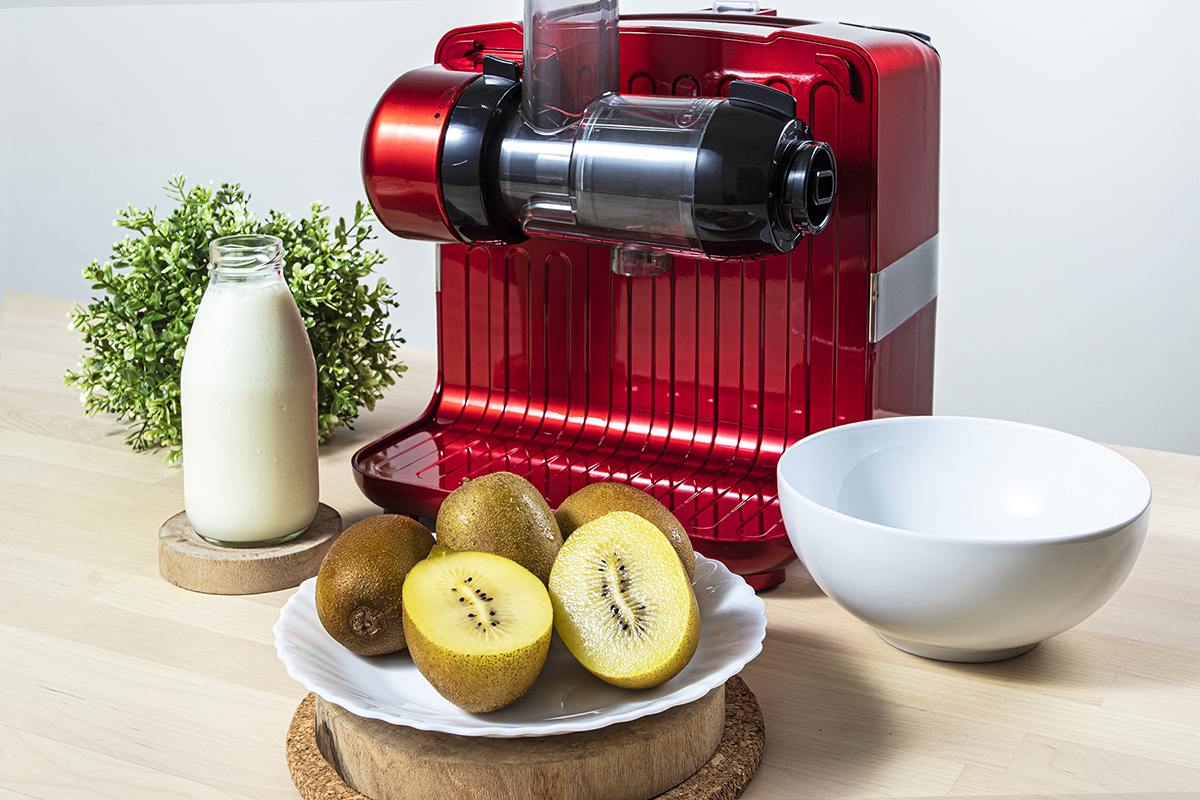 炎炎夏日,沁涼的冰品可是大人小孩都愛的消暑聖品。但想要盡情享受美味又怕體重上升,那麼快試試這款水果雪酪。不僅可品嚐到新鮮水果的原汁原味,還能輕鬆控制糖量的添加,讓你吃冰不用再有滿滿的罪惡感。且以慢磨機緩慢擠壓、研磨的過程,可使雪酪口感更為綿密,每一口都能給你大滿足的快感。