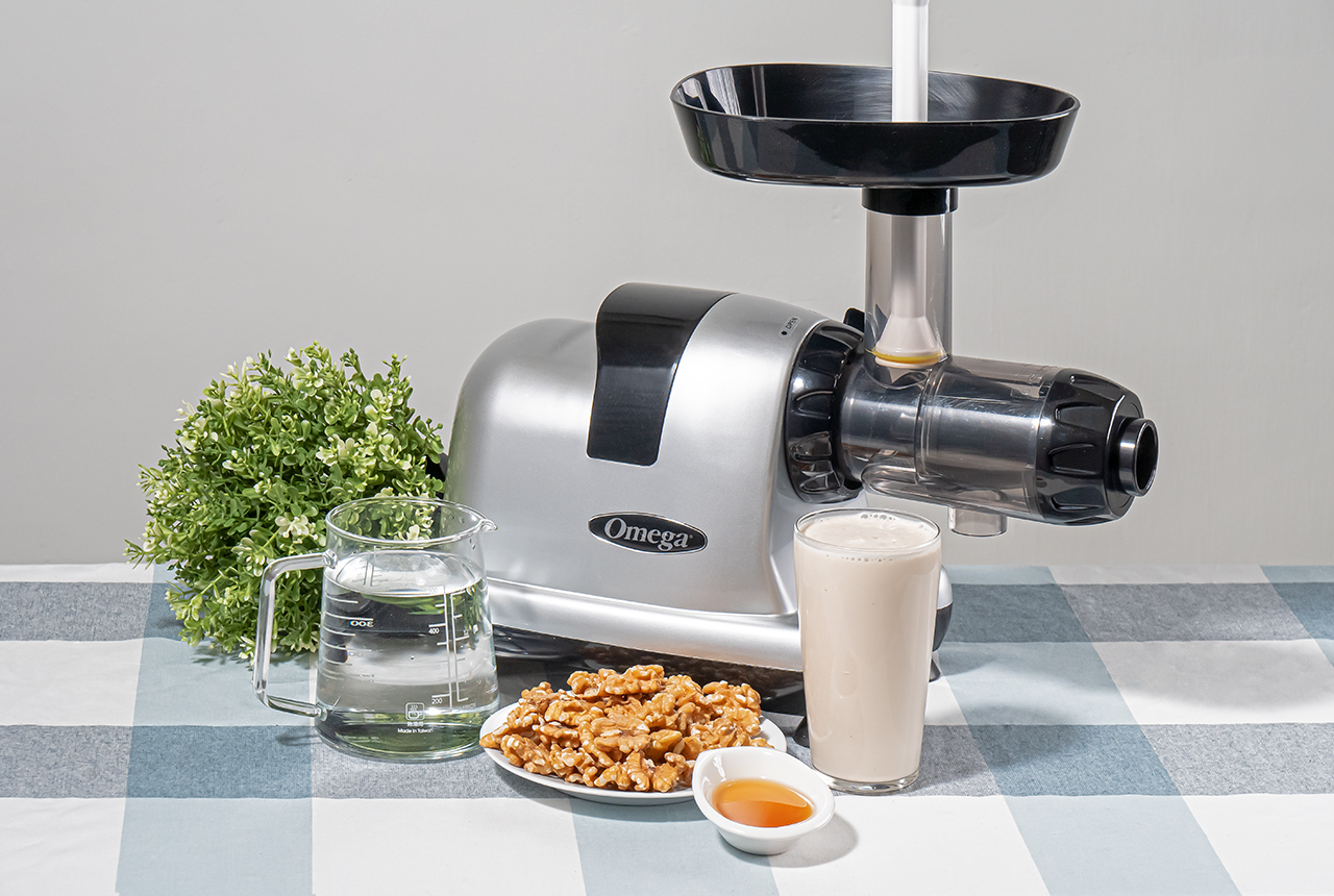 Omega冷萃慢磨機是美國冷壓慢磨廚電第一品牌,多款出色的全能機種,協助您的廚藝完美發揮,除了配備全方位榨汁端蓋外,搭配出料錐與六件噴嘴組,可為食材進行加工,除了製作堅果奶,像是健康蔬果汁、嬰幼副食品、冰品、麵條、麵包、堅果醬、咖啡豆研磨或許多其他健康食品,為您的健康生活提供多元飲食方案。
