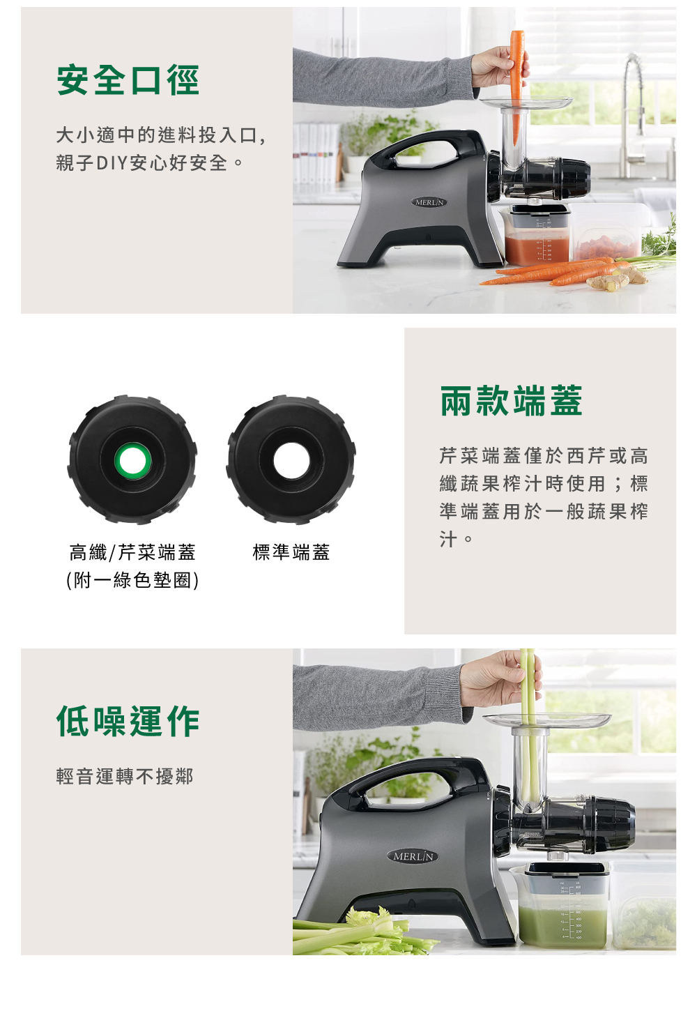 ╴ 內附2款榨汁端蓋 - 適合所有西芹/蔬果榨汁