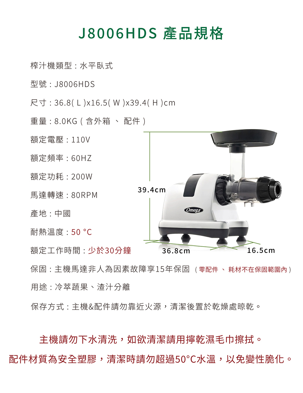 Omega J8006HDS 美國專利 365 慢速榨汁機