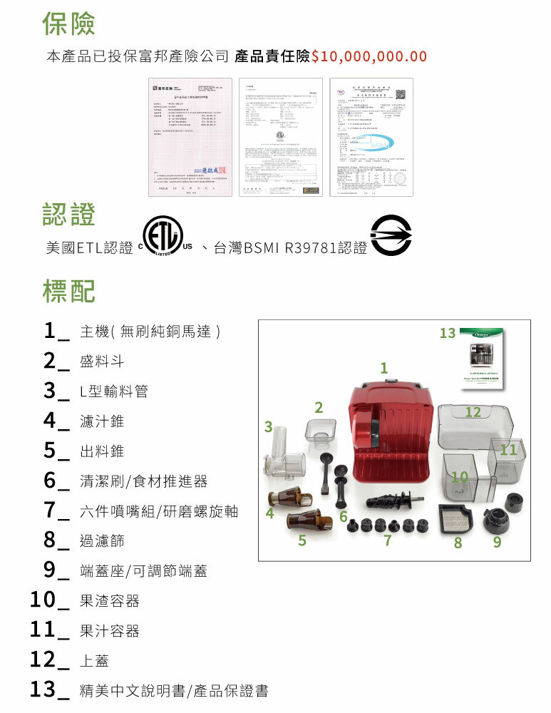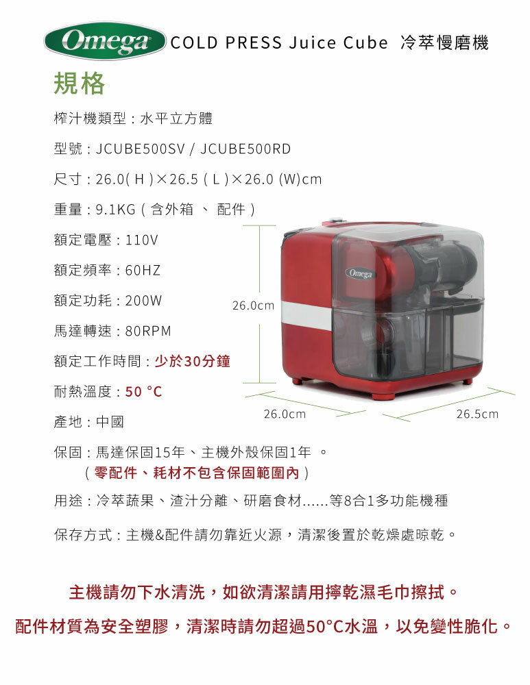 Omega QBar JCUBE500RD 美國專利365慢速榨汁機