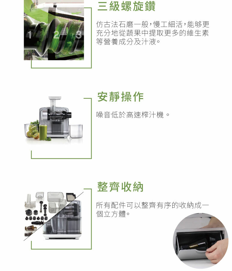 ╴ 安靜運轉優雅榨汁,零件清潔輕鬆