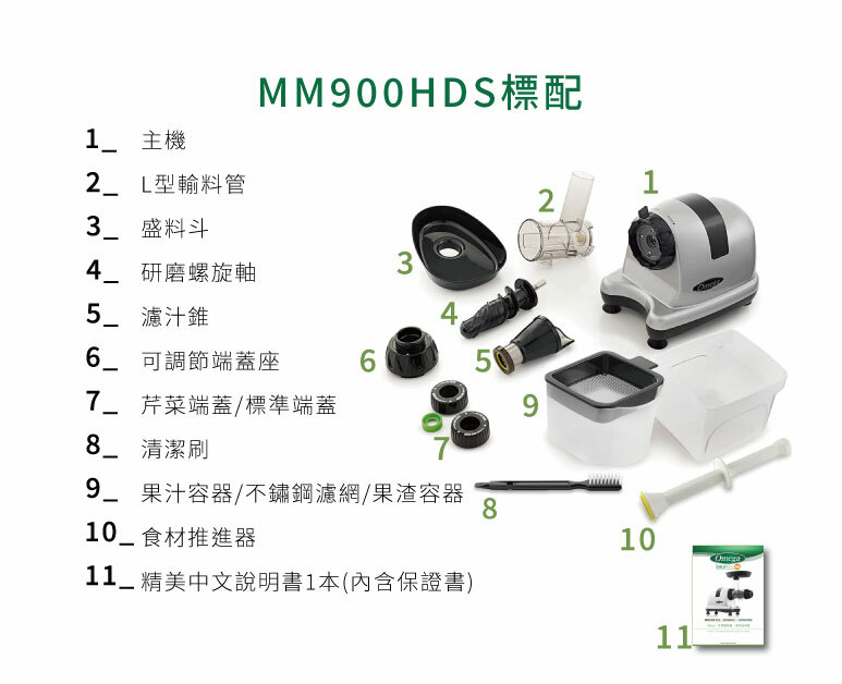 Omega 團隊與 Medical Medium 安東尼威廉 共同設計了全球最暢銷機種 MM900HDS,該型號配備了一個高纖蔬果(芹菜)端蓋,這項專利設計優化了您的芹菜汁榨取,通過更長時間地擠壓芹菜來提供最大程度的汁液提取,從而產生更多汁液並減少浪費。