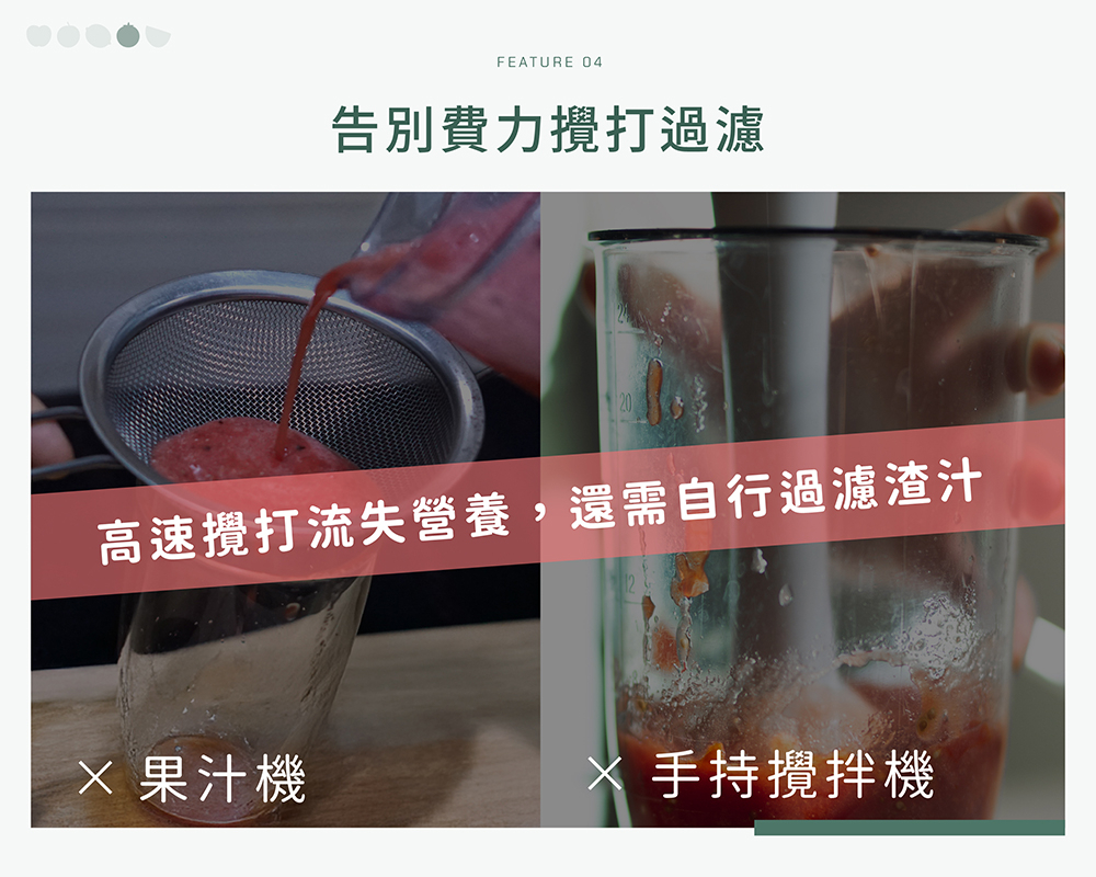 ╴ Batch!一次榨 - 硬、軟質蔬果皆可輕鬆榨汁